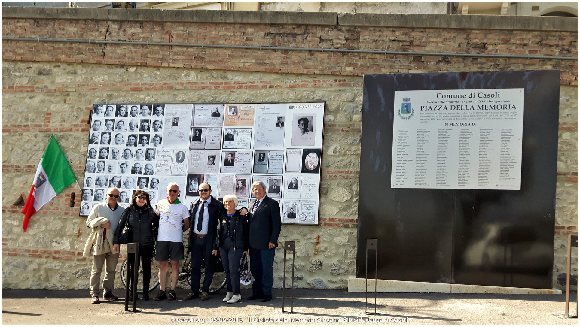 Giovanni Bloisi, il Ciclista della Memoria che sta ripercorrendo il viaggio del capitano Enrico Levi, a 101 anni dalla sua nascita, ha fatto tappa a Casoli, in Piazza della Memeoria l'8 Maggio 2019